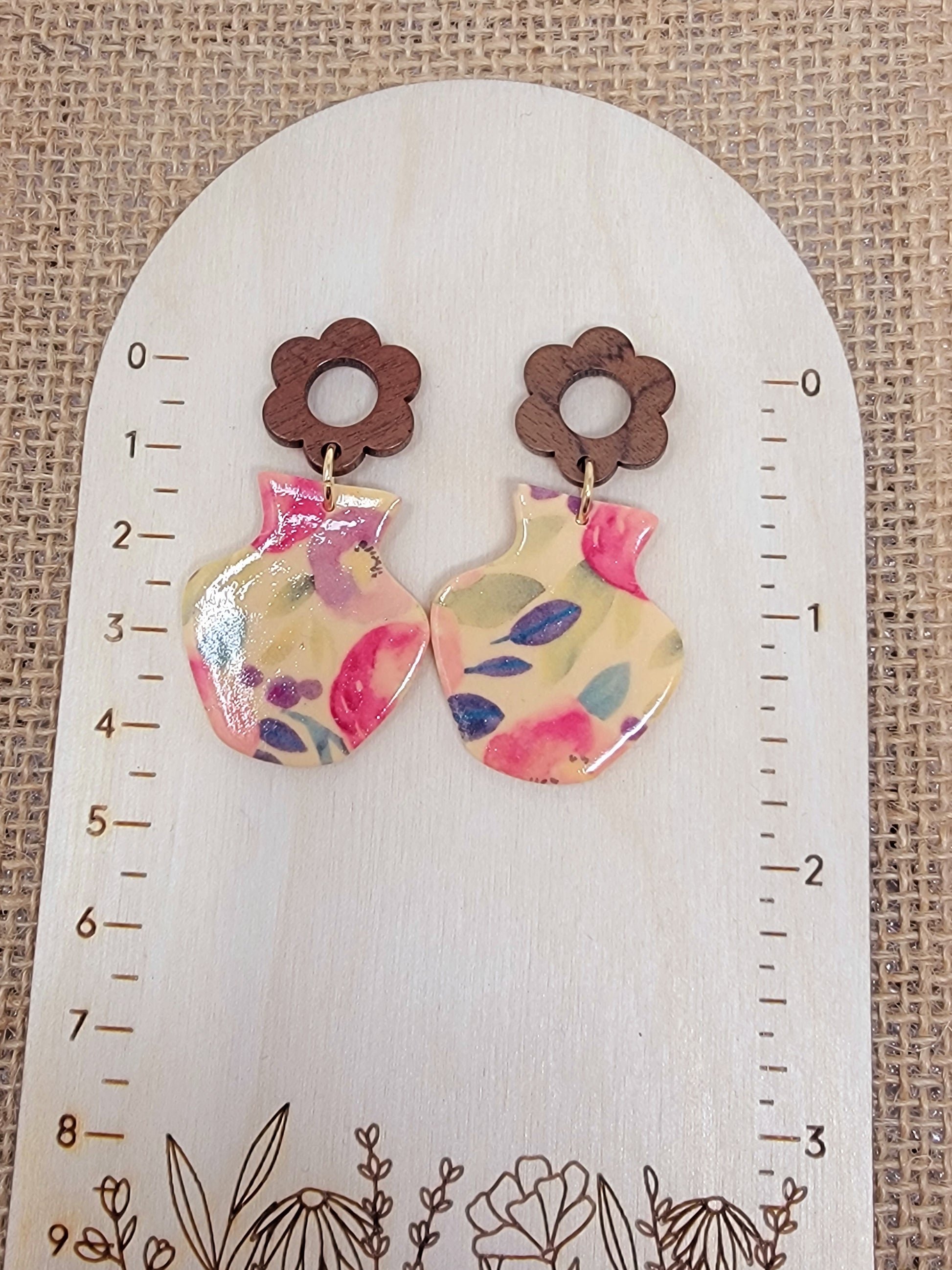 Floral vase dangles with wooden post top