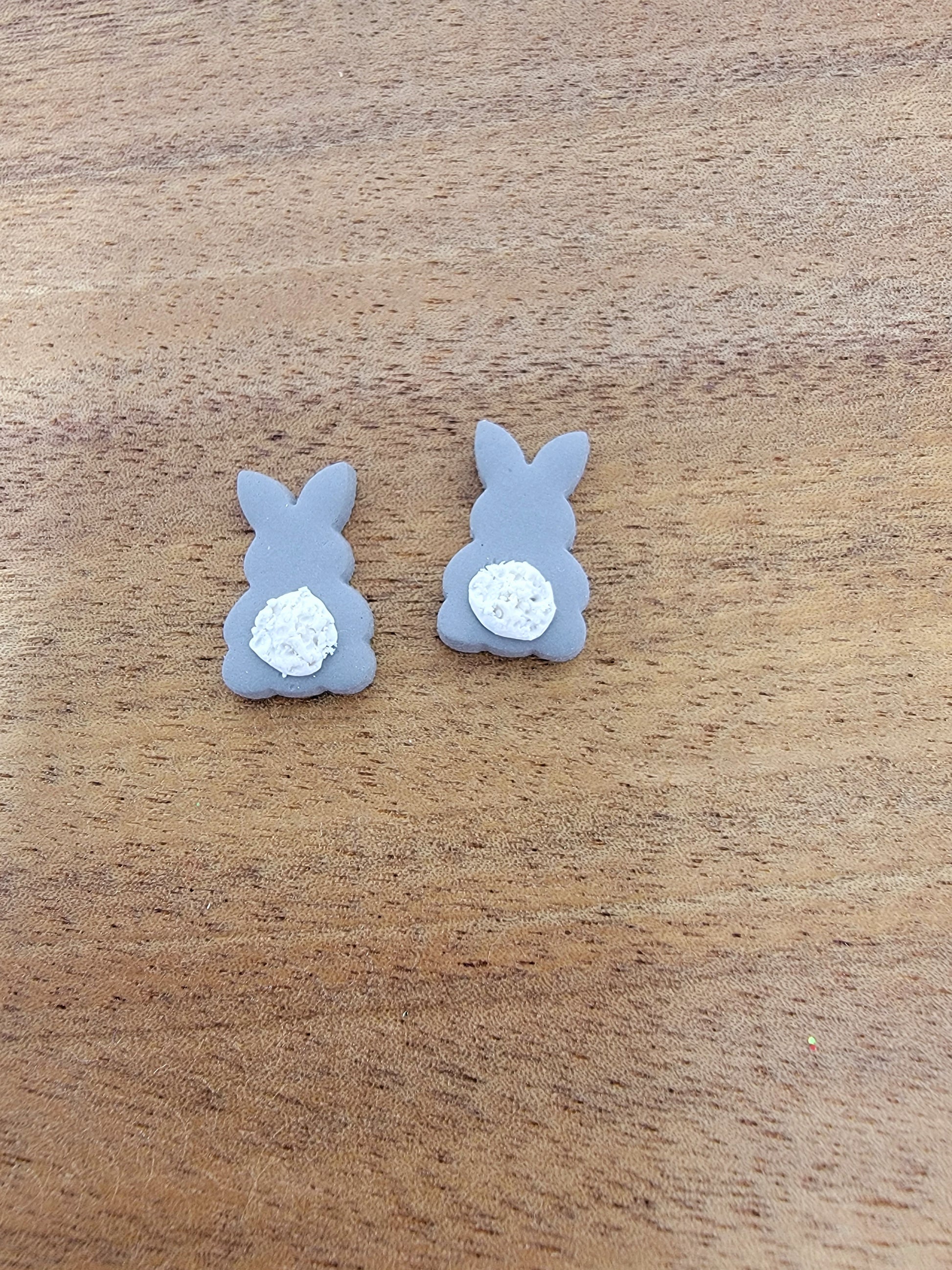 Gray fluffy bunny studs